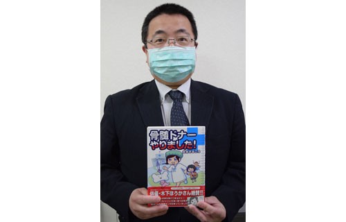 [写真/寄贈した図書を手に、血液疾患について知ってもらいたいと話す星野さん ]