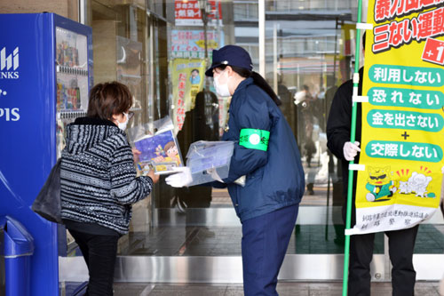 [写真/特殊詐欺防止を呼び掛ける警察官 ]