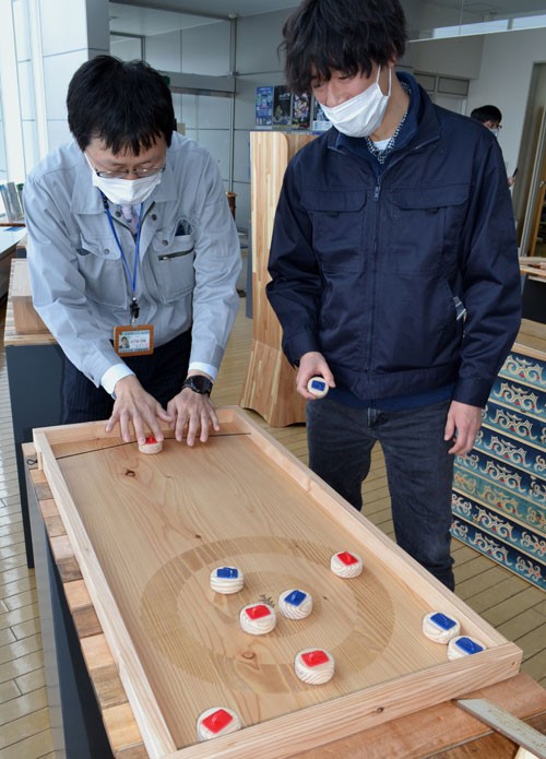 [写真/カラマツを使ったカーリングゲーム ]
