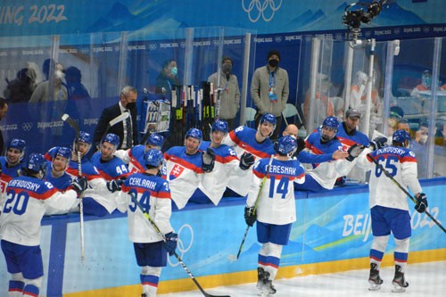 [写真/男子決勝トーナメント1回戦で、土壇場で米国に追い付き気勢を上げるスロバキア ]