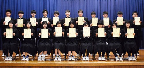 [写真/実務検定3種目以上で1級を取得した3年生20人 ]