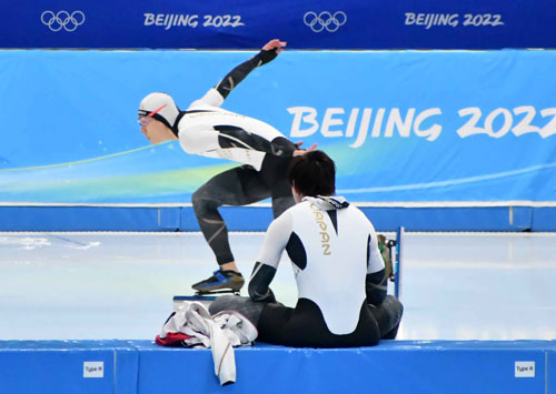 [写真/男子1000㍍。新濱立也は自身の試合後、別海町の後輩である森重航の滑りを見守った ]