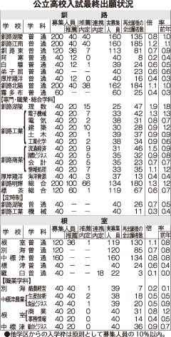 公立高最終出願、普通科最高は釧江南1.2倍(2022-03-02)