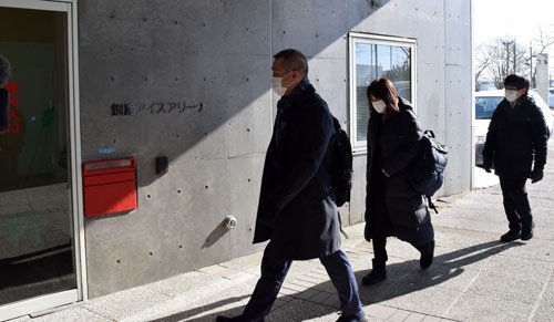 [写真/会場に向かう国立感染症研究所の職員ら ]