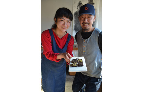 [写真/素材にこだわった「ヴィーガンチョコ」をPRする坂見店主(右)と妻の梨舞さん ]