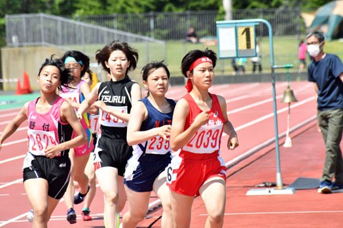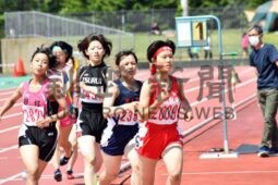[写真/【女子800㍍決勝】終始先頭を引っ張り、そのまま1着でゴールした附属の深津(右)。同1500㍍も制し、2冠を達成 ]