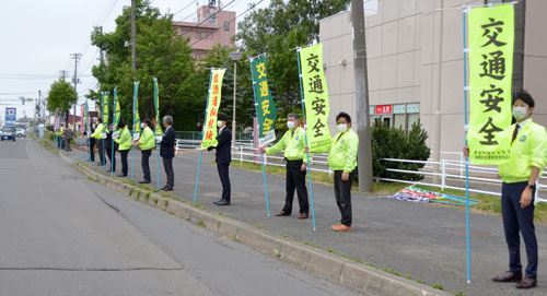 「旗の波」で交通安全訴え 損害保険代協交通安全啓蒙(2022-07-07)