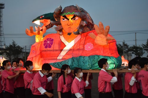 [写真/3年3組が製作したあんどん「侍と蛇の戦い」(湖陵高校) ]