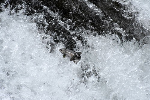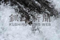 [写真/力強く遡上するサクラマス ]