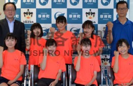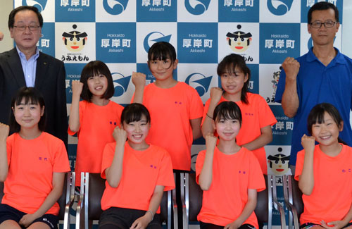 真龍小児童 陸上全道へ 厚岸町役場で活躍誓う(2022-07-14)