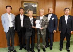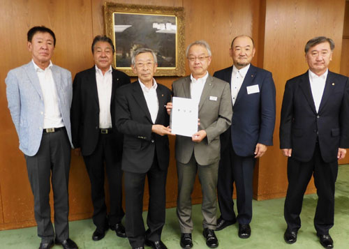 [写真/土屋副知事(中央右)に要望書を手渡す山本代表幹事や栗林代表幹事ら ]