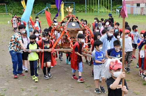 みこし渡御や縁日 城山小でミニもしりや祭り(2022-07-20)