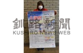 [写真/ポスターを手に生誕祭をPRするわっと職員 ]