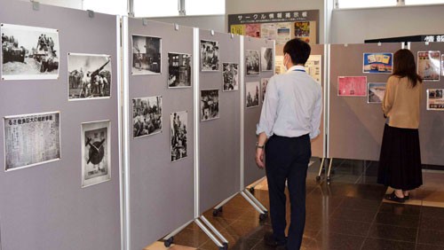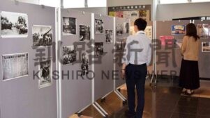 [写真/市生涯学習センターで開かれている釧路空襲写真展 ]