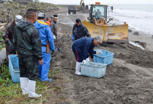 「海中みこし」前に清掃、重機で通路整備も(2022-07-22)