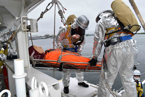 旅客船事故に備え訓練 根室海保と市消防本部(2022-07-22)