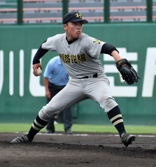 [写真/【1回戦、武修館─釧北陽】釧根支部では無失点。北大会でも堂々の投球を見せた釧北陽の先発山村 ]