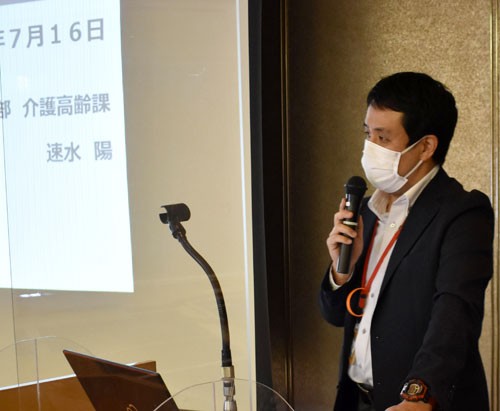 [写真/家族を一体で支援するプログラムの充実を紹介した速水さん ]