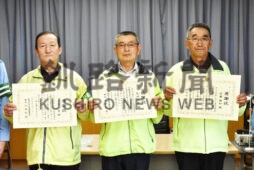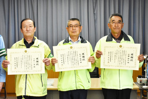 [写真/感謝状を手に佐藤さん、丸田さん、川尻さん(右から) ]