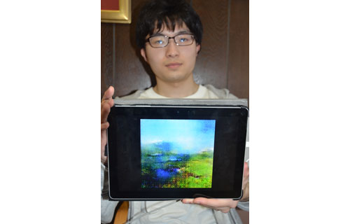 [写真/100枚の写真から生成した釧路湿原の絵。まだぼんやりとした形しか見えない ]
