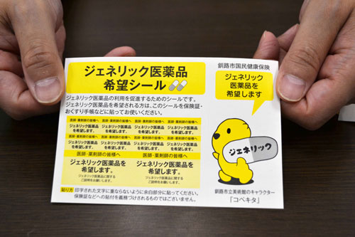 [写真/市国保課が保険証などに貼付を呼び掛けているジェネリック医薬品「希望シール」 ]