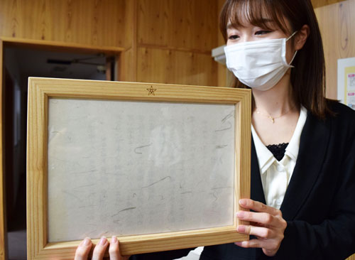 市の感謝状オール地元産に カラマツ額と富貴紙賞状(2022-08-05)