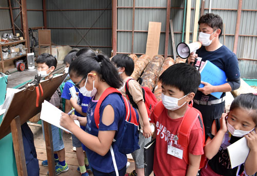 木の加工作業など学ぶ 少年少女発明ク、丸善木材で社会見学(2022-08-06)