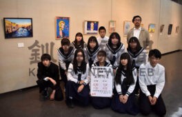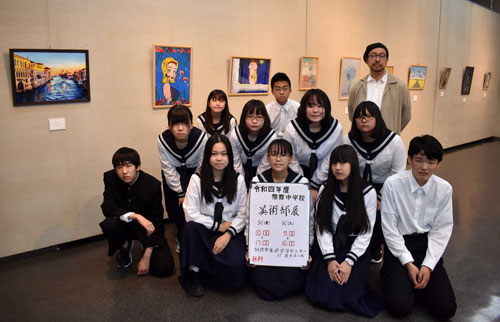 [写真/創作活動の成果を披露している幣舞中美術部の部員たち ]