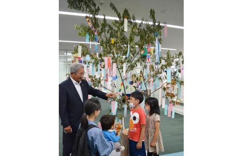近藤林業、中央図書館に柳の木寄贈 七夕飾りに子供ら願い(2022-08-06)