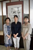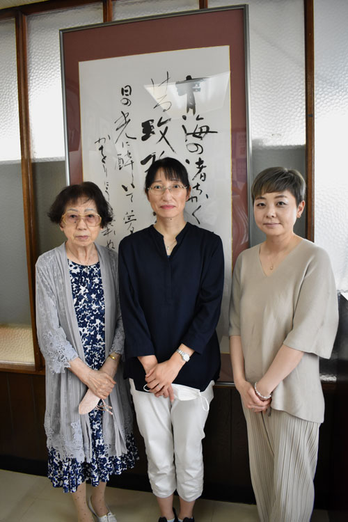[写真/伊東会主(左)の指導を受けて師範に合格した渡邊さん(中央)と成田さん ]