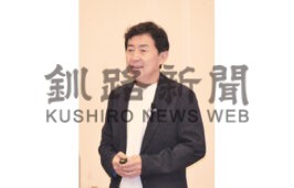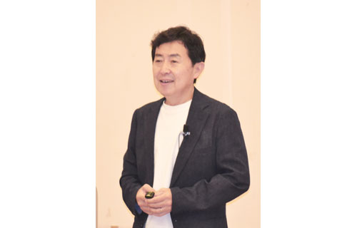 [写真/ユーモアを交え特殊詐欺の特徴と対策を話す笠井さん ]