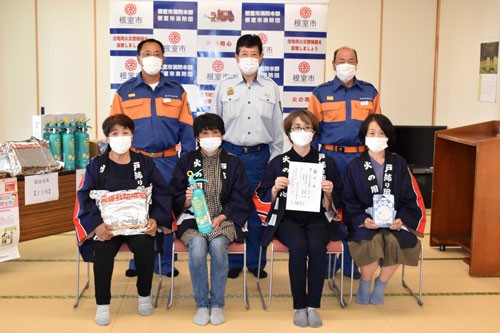 [写真/落石地区女性防火クラブに火災警報器などが贈られた ]
