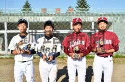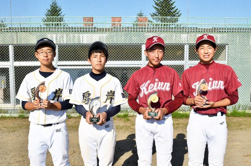 [写真/最優秀選手賞に輝いた佐藤(釧景雲、右から2人目)ら個人賞を獲得した4選手 ]