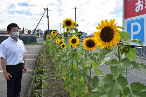 絆のヒマワリ咲き誇る くしろバス 交通安全を再確認(2022-09-05)