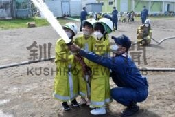 F育で意識高める 児童らが放水体験(2022-09-05)