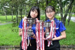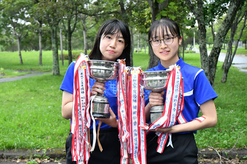 [写真/女子ダブルスで頂点に立った飯田結子・松田徠未組(釧湖陵) ]