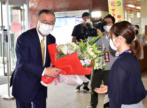 石垣市長が初登庁 「課題解決へ全力」(2022-09-07)