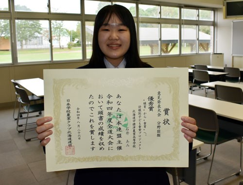 農業ク全道技術大会 阪本さん(別海高3年)優秀賞、全国へ_1(2022-09-08)