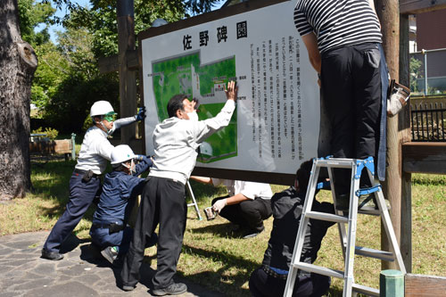 佐野碑園の案内看板、協会構成社が改修 屋外広告の日で(2022-09-16)