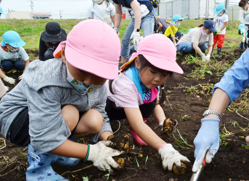 イモ掘りに園児ら笑顔 浜中町立5保育所(2022-09-18)