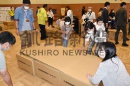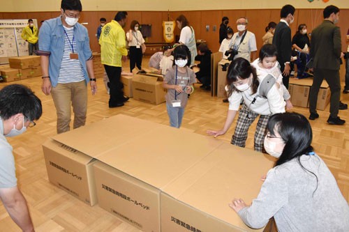 段ボールベッド設置に挑戦 避難所体験フェア(2022-09-21)