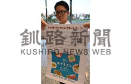 [写真/チラシを手に投稿を呼び掛ける職員 ]