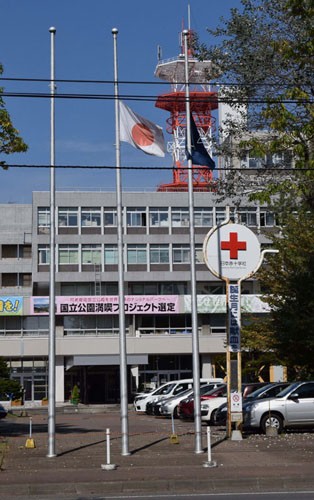 [写真/釧路市役所本庁舎で行われた半旗掲揚 ]