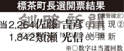 標茶町長選 佐藤氏再選 新人類瀬氏を破る_1(2022-10-03)
