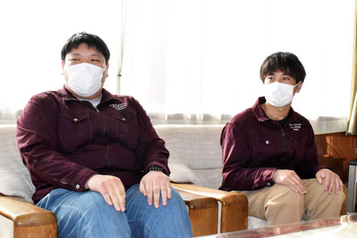 [写真/市役所を訪問した下遠野さんと和田さん(左から) ]