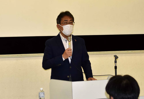 [写真/勉強会で講師を務めた岡部教育長 ]