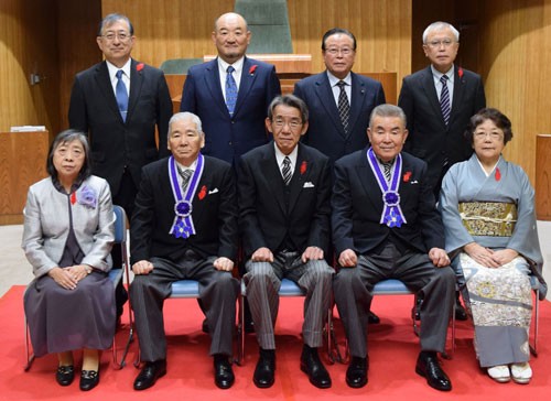 [写真/市民貢献賞を受賞した太田氏(手前中央左)と濱木氏(同右) ]