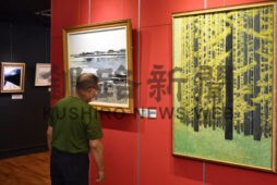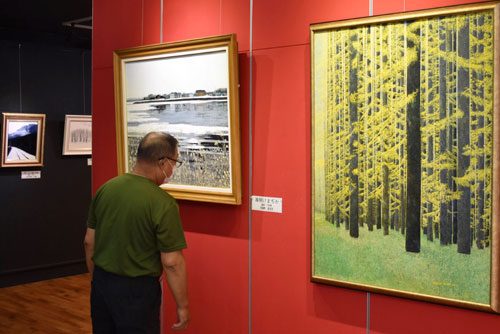 [写真/道の駅摩周温泉で開かれている三城さんの油彩画展 ]