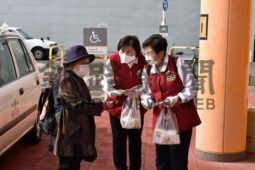 [写真/来店者にティッシュなどを手渡し、火の用心を呼び掛ける家庭防災推進員(ビッグハウス旭町店) ]