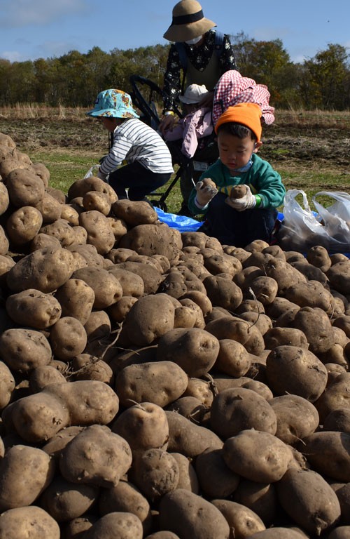 イモ袋詰めに笑顔 3年ぶり伯爵まつり盛況(2022-10-18)